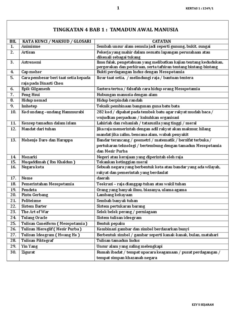 TAMADUN AWAL MANUSIA BIL KATA KUNCI MAKSUD GLOSARI CATATAN 1.
